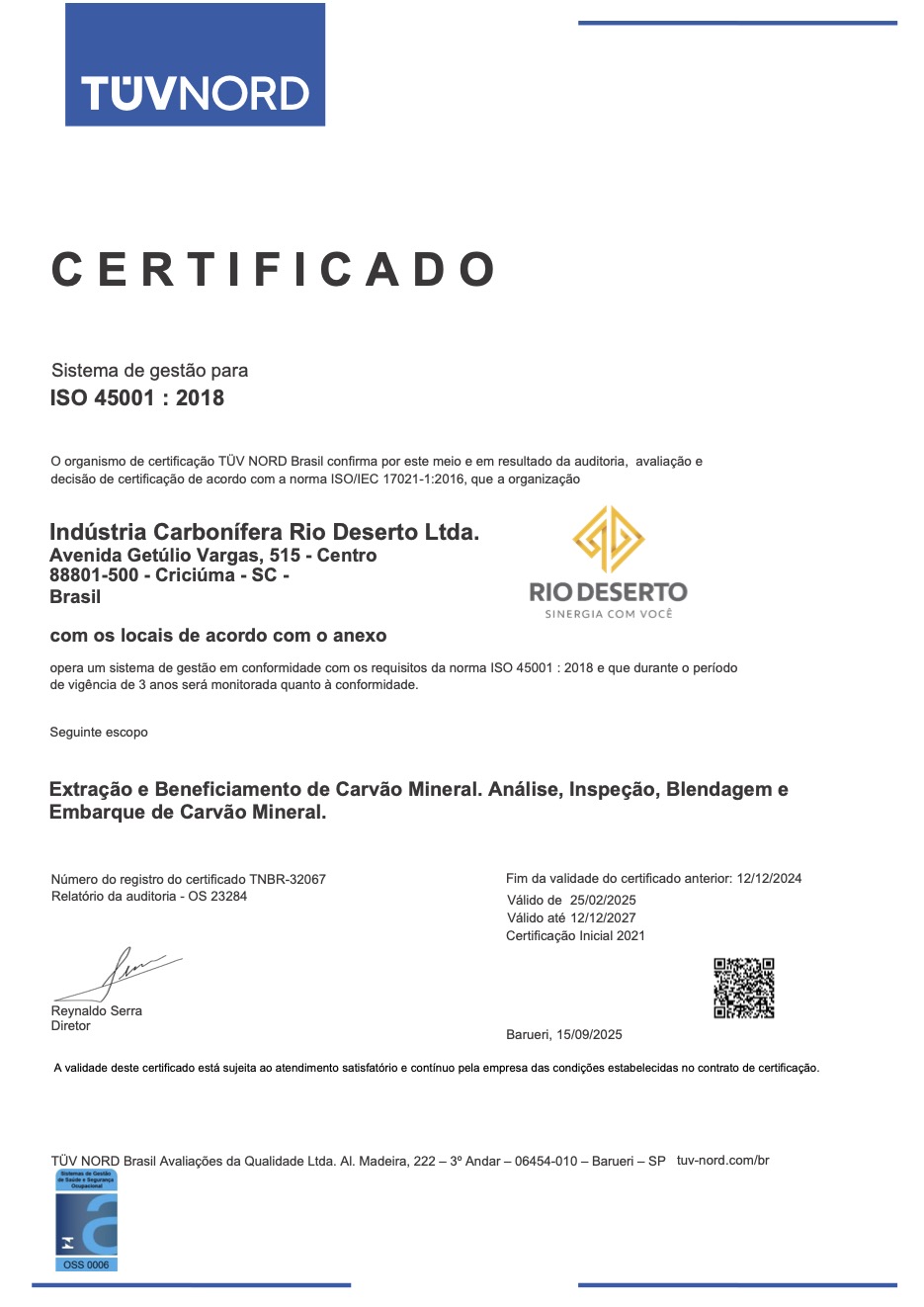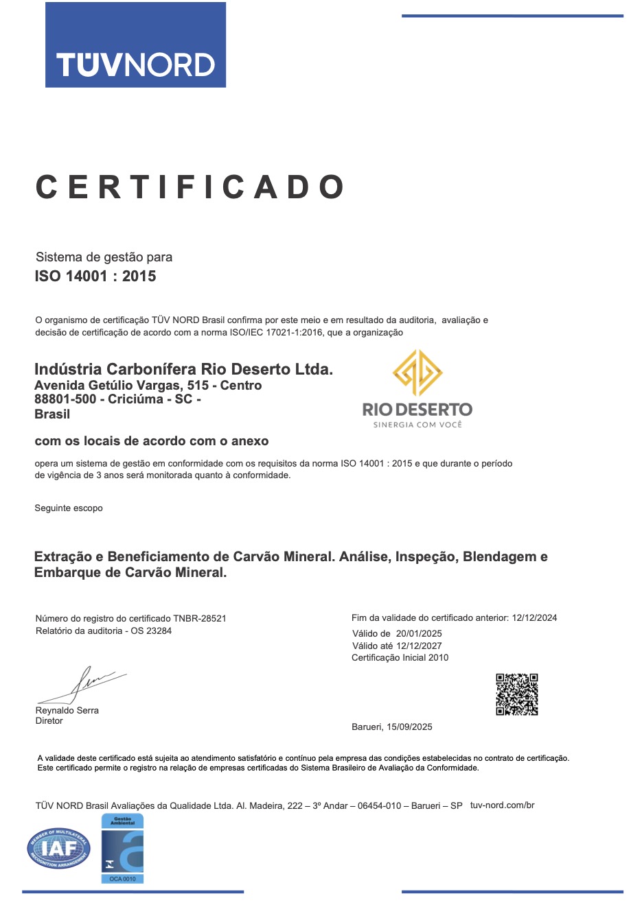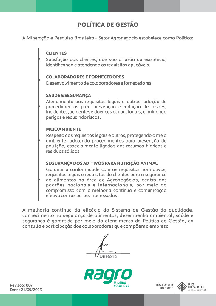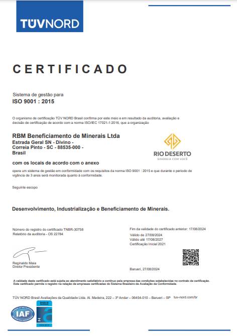 Para cumprir com as exigências de órgãos certificadores nacionais e internacionais, a Rio Deserto adota e respeita todas as medidas que asseguram as certificações. O profissionalismo, compromisso com o meio ambiente e a busca por melhorias estimulam a manutenção dos certificados.